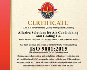 حيث انه من مميزات مصنع حلول الجزيرة للتكييف والتبريد تصنيع جميع الدكت الخاص بمشاريع التكييف المركزي والمخفي الكونسيلد بمصنع الدكت الخاص بنا في حي المصفاه شارع احمد المرزوقي ونتميز بأمتلاك خط انتاج لتصنيع الدكت آليا بأفضل الموصفات تحت اشراف افضل المهندسين ، شركة حلول الجزيرة للتكييف والتبريد هي الجهة الأصلية بتاريخ انشاء الشركة بهذا الاسم والحاصلة على ترخيص صناعي رسمي من وزارة الصناعة والثروة المعدنية برقم (4704090013)، وتمتلك مصنعًا معتمدًا لتصنيع الدكت وفق أعلى معايير الجودة والاختبارات الفنية وشهاة الايزو 9001:2015
